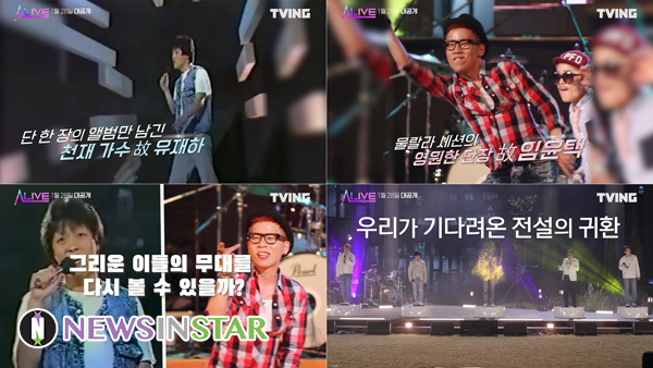 여기에 MC 김정은을 비롯해 이승철, 빅마마, 스윗소로우, 울랄라세션, 김나영, 휘인, 멜로망스 등 국내 최고의 가수들이 참여해 더욱 풍성한 시간을 선사할 예정이다. 35년 만의 신곡 발표와 8년 만의 울랄라세션의 완전체 무대를 예고한 유재하와 임윤택의 새로운 무대를 만나볼 수 있는 티빙 오리지널 <얼라이브>는 오는 1월 28일(금)부터 오직 티빙에서 만나볼 수 있다.