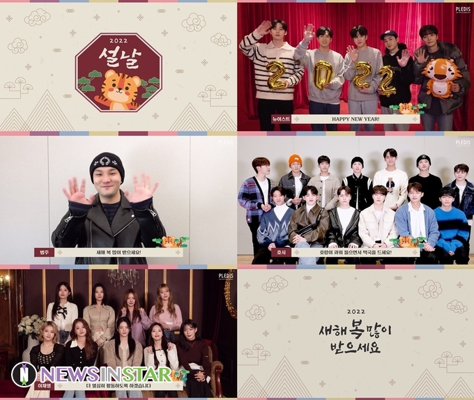 플레디스 엔터테인먼트는 지난 30일 정오 공식 유튜브와 SNS 채널을 통해 뉴이스트와 범주, 세븐틴 그리고 프로미스나인까지 소속 아티스트들이 전하는 2022년 설날 인사 메시지 영상을 공개했다.