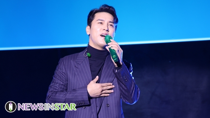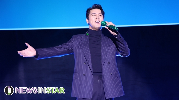 [뉴스인스타 양철수기자] 2월 4일(금) 오후, 서울시 영등포구 타임스퀘어 CGV 영등포에서 진행된 '금잔디' 데뷔 20주년 기념 정규 앨범 ‘Remember’ 미니 콘서트에 게스트로 미스터트롯 장민호가 '남자는 말합니다' 무대를 선보이고 있다.