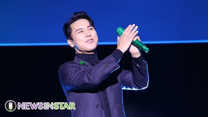 [뉴스인스타 양철수기자] 2월 4일(금) 오후, 서울시 영등포구 타임스퀘어 CGV 영등포에서 진행된 '금잔디' 데뷔 20주년 기념 정규 앨범 ‘Remember’ 미니 콘서트에 게스트로 미스터트롯 장민호가 '남자는 말합니다' 무대를 선보이고 있다.
