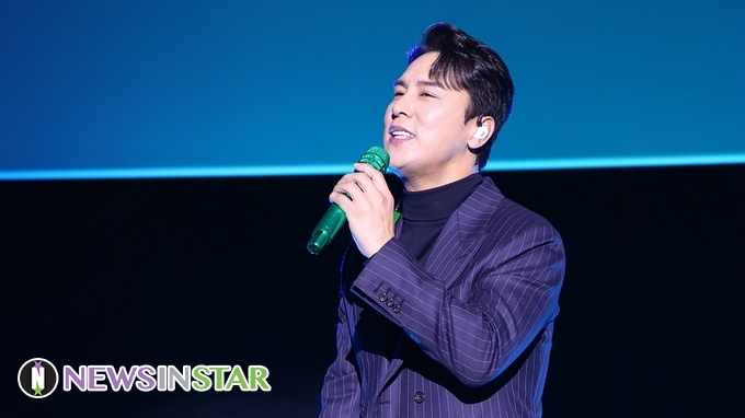 [뉴스인스타 양철수기자] 2월 4일(금) 오후, 서울시 영등포구 타임스퀘어 CGV 영등포에서 진행된 '금잔디' 데뷔 20주년 기념 정규 앨범 ‘Remember’ 미니 콘서트에 게스트로 미스터트롯 장민호가 '남자는 말합니다' 무대를 선보이고 있다.