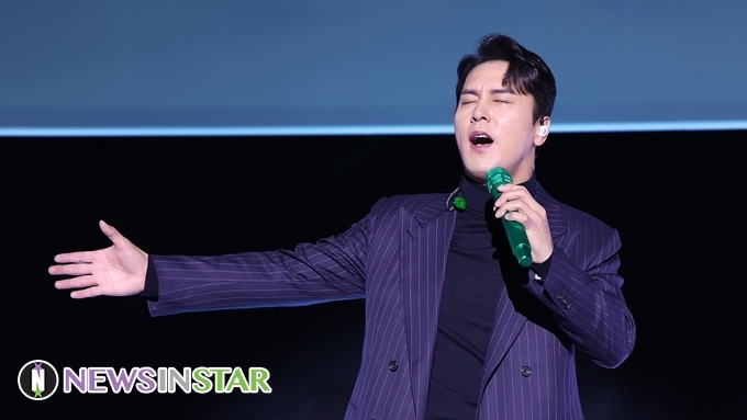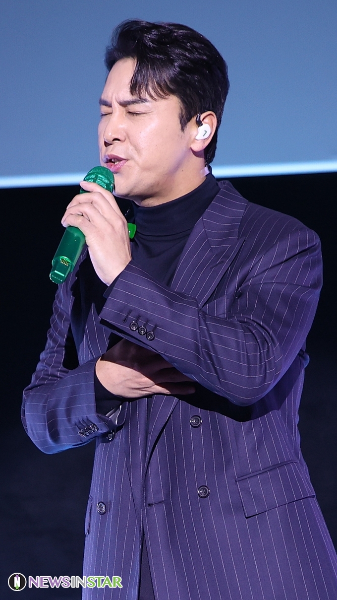 [뉴스인스타 양철수기자] 2월 4일(금) 오후, 서울시 영등포구 타임스퀘어 CGV 영등포에서 진행된 '금잔디' 데뷔 20주년 기념 정규 앨범 ‘Remember’ 미니 콘서트에 게스트로 미스터트롯 장민호가 '남자는 말합니다' 무대를 선보이고 있다.