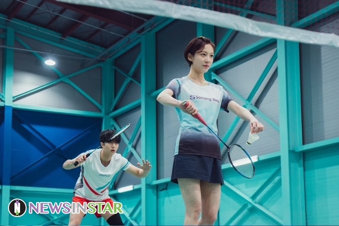 이런 가운데 3월 11일 공개된 스틸컷에는 혼합복식팀으로 코트 위에 선 김무준과 서지혜가 담겨있다. 서지혜가 코트의 전위를, 김무준이 후위를 맡고 있다. 라켓을 쥔 두 사람의 진지한 눈빛이 배드민턴에 대한 진심을 보여준다. 무엇보다 함께 서 있는 것만으로도 터져 나오는 케미가 시선을 사로잡는다.