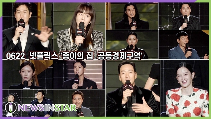 [뉴스인스타 양철수기자] 6월22일(수) 오전, 서울시 강남구 삼성동 코엑스 그랜드볼룸에서 진행된 넷플릭스(Netflix) 오리지널 시리즈 '종이의 집: 공동경제구역' 제작발표회가 열려 배우 유지태, 김윤진, 박해수, 전종서, 이원종, 박명훈, 김성오, 김지훈, 장윤주, 이주빈, 이현우, 김지훈, 이규호와 김홍선감독, 류용재 작가가 참석해 배역 캐리턱에 대해 설명하고 있다.