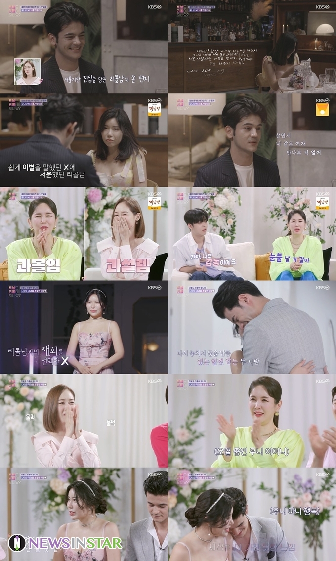 또 리콜남은 “어디서 살든 너랑 함께하지 않으면 의미가 없을 것 같아. 보고싶고 연락하고 싶었지만 너가 혹시 다른 사람을 만나고 있을까봐 무서웠어. 헤어지고 생각해봤더니 너처럼 나랑 어울리는 사람 없었어”라고 고백하며 눈물까지 보였다. 이별 당시에 현실적인 문제를 배제할 수 없었던 X는 리콜남의 그때와 지금, 달라진 것이 무엇인지 궁금해했고, 리콜남은 “이제는 너 말고 다른 사람과는 결혼을 하고 싶지 않아. 내년 아니면 2년 안에 결혼 준비할 수 있다. 너가 아닌 다른 사람은 필요없어. 난 아직 널 사랑해. 내 마음은 안 변할 것 같아”라고 어필하면서 반지를 건넸고, “다음에 우리가 만날 때 이 반지를 끼고 왔으면 좋겠다”고 했다.