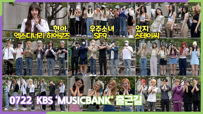 [뉴스인스타 양철수기자] 7월15일(금) 오전, 서울시 영등포구 여의도 KBS 신관 공개홀에서 생방송으로 진행되는 KBS '뮤직뱅크' 출연을 위해 그룹 있지(ITZY) 스테이씨, SF9, 현아, 우주소녀, 크랙실버, 피원하모니, 아이리스, 엑스디너리 히어로즈, 블리쳐스, 하이키가 방송국에 도착해 포즈를 취하고 있다.