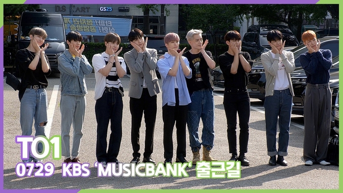 [케이팝인스타 양철수기자] 7월 29일(금) 오전, 서울시 영등포구 여의도 KBS 신관 공개홀에서 열린 KBS '뮤직뱅크' 생방송에 참석하기 위해 그룹 TO1(티오원) 동건, 찬, 지수, 재윤, 제이유, 경호, 다이고, 렌타, 여정이 방송국에 도착해 포즈를 취하고 있다.