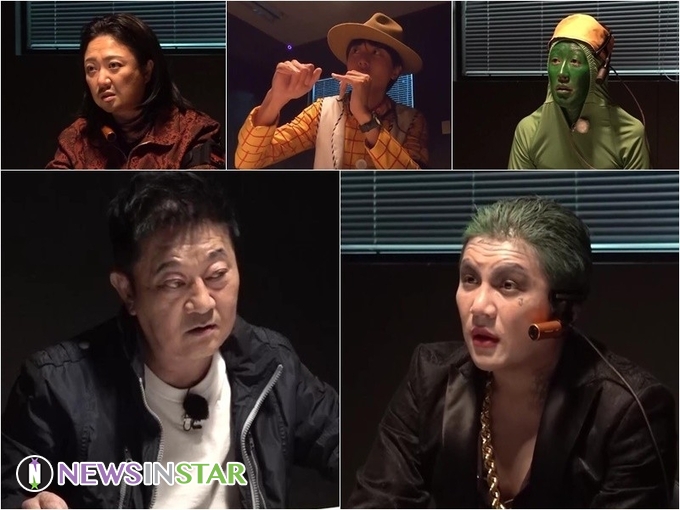 그런가하면 또다른 스틸에서 수리남 장첸으로 분한 김숙, 리미티드 소주로 분한 홍진경, 우디로 분한 주우재, 뱀파이어로 분한 우영의 긴장된 모습이 공개되며 도대체 심문실에서 무슨 일이 있었을 지 궁금증을 자아내게 한다.