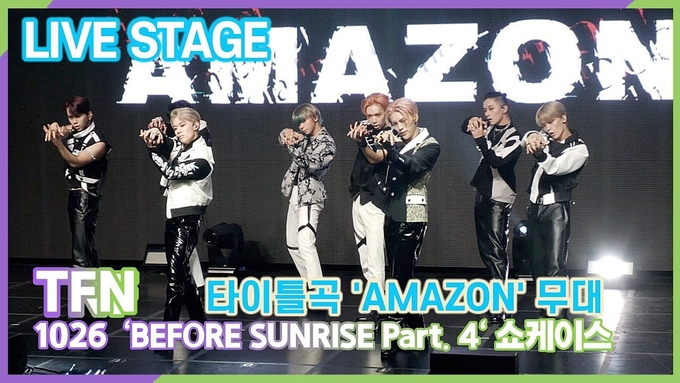 [케이팝인스타 양철수기자] 10월 26일(수) 오전, 서울시 마포구 합정동 신한PLAY스퀘어에서 그룹 TFN의 새 미니앨범 'BEFORE SUNRISE Part. 4(비포 선라이즈 파트 4)' 발매 기념 쇼케이스가 열려 멤버 노아, 케빈, 건우, 레오, 온, 제로, 카이리, 키오가 타이틀곡 'AMAZON(아마존)' 무대를 선보이고 있다.