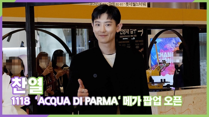 [케이팝인스타 양철수기자] 11월 18일(금) 오전, 서울시 송파구 잠실 롯데월드몰에서 이탈리아 클래식 향수 브랜드 '아쿠아 디 파르마(ACQUA DI PARMA)'의 메가 팝업 스토어 오프닝 행사가 열려 그룹 엑소 찬열이 참석해 포토타임을 갖고 있다.