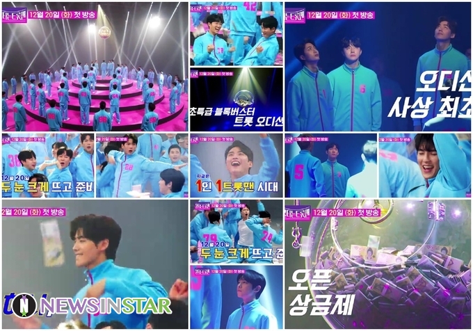 그리고 박현빈의 ‘앗 뜨거’가 흘러나오자 현금이 사방으로 흩뿌려지고, 100인의 트롯맨이 잔뜩 흥분한 상태로 음악에 맞춰 무아지경 막춤을 춰 현장의 분위기를 절정으로 끌어올린다. 무엇보다 각양각색 남친 스타일 참가자들의 꽃미남 비주얼이 눈길을 사로잡는 가운데, 대한민국 트롯계에 지각변동을 일으킬 또 한 명의 슈퍼 트롯 스타가 탄생할지 궁금증을 높인다.