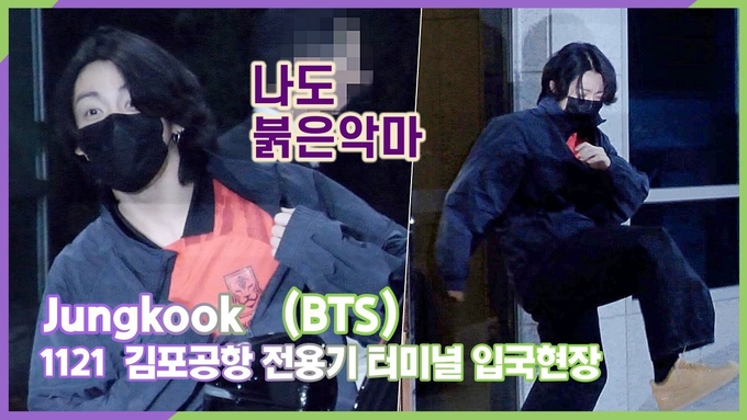 [뉴스인스타 양철수기자] 11월 21일(월) 오후, 서울시 강서구 방화동 서울 김포비즈니스항공센터(SGBAC)에 방탄소년단(BTS) 정국이 카타르 월드컵 개막식 공연을 마치고 귀국하고 있다.