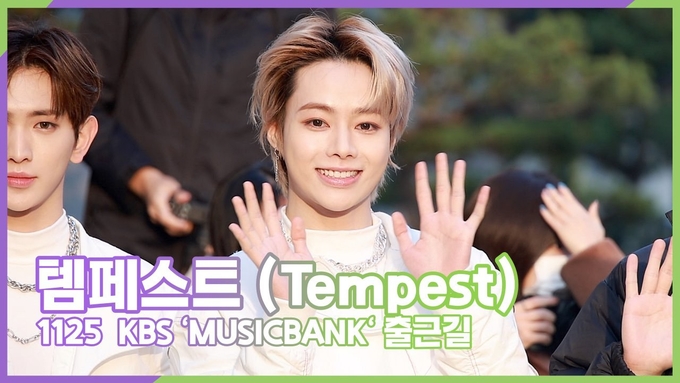 [뉴스인스타 양철수기자] 11월 25일(금) 오전, 서울시 영등포구 여의도 KBS 신관 공개홀에서 열린 KBS '뮤직뱅크' 생방송에 참석하기 위해 그룹 템페스트(Tempest) 한빈, 형섭, 혁, 은찬, LEW, 화랑, 태래가 방송국에 도착해 포즈를 취하고 있다.
