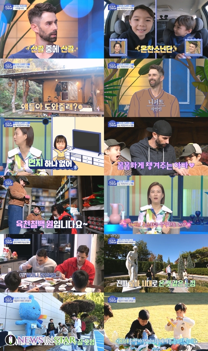 니퍼트는 이번에는 아이들에게 역할을 정해주며 책임감을 심어주는 육아법으로 시선을 모았다. 니퍼트 가족은 새로운 식구인 반려견 밤밤이와 강원도 영월로 ‘촌캉스’를 떠났다. 니퍼트는 형인 라온에게 “네가 보스야”라며 동생 라찬이와 강아지를 잘 챙길 것을 당부하며 책임감을 심어줬다. 아빠의 당부대로 라온이는 동생과도 잘 놀아주고 강아지도 살뜰하게 챙겼다.
