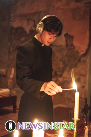 공개된 스틸에서 차은우는 만화를 찢고 나온 듯한 놀라운 싱크로율은 물론 훈훈한 사제복 핏으로 이목을 단숨에 사로잡았다.
