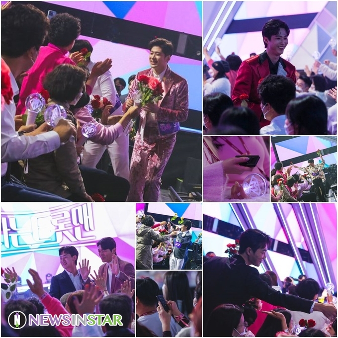 ‘불타는 트롯맨’들이 녹화 현장에 참여한 국민 대표단을 향해 직접 꽃을 나눠주는 초특급 팬 서비스를 개최, 열광적인 반응을 끌어내고 있다.