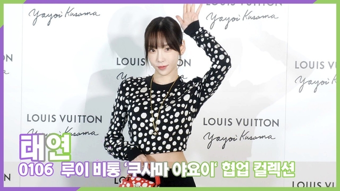 [뉴스인스타 양철수기자] 1월 6일(금) 오후, 서울시 강남구 청담동 루이비통 메종 서울에서 세계적인 예술가 쿠사마 야요이(Yayoi Kusama)와의 협업으로 재탄생한 가방과 남성복 및 여성복, 선글라스, 향수, 슈즈, 액서서리 등 협업 컬렉션을 선보이는 포토 행사가 진행되어 가수 태연이 포즈를 취하고 있다.