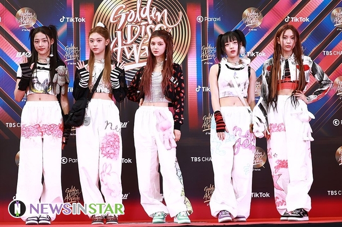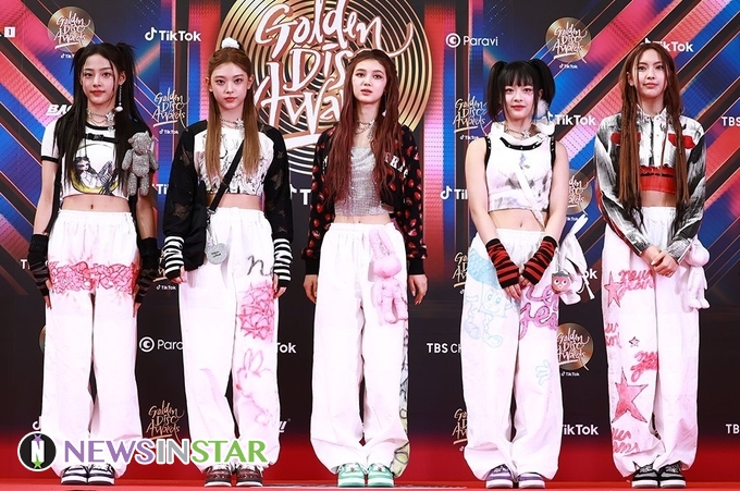 [뉴스인스타 양철수기자] 1월 7일(토) 오후, 태국 방콕의 라자망갈라 국립 경기장에서 열리는 ‘37회 골든디스크어워즈 with 틱톡’ 레드카펫에서 그룹 뉴진스(NewJeans) 민지, 혜인, 해린, 하니, 다니엘이 포즈를 취하고 있다.