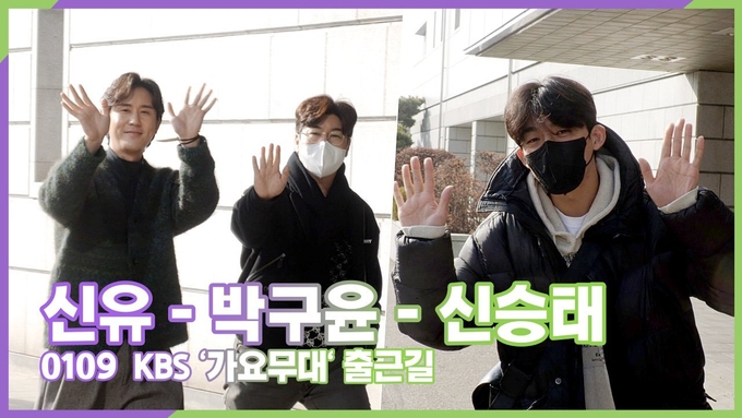[뉴스인스타 양철수기자] 1월 9일(월) 오후, 서울시 영등포구 여의도동 KBS 별관에서 진행되는 KBS 1TV '가요무대' 녹화를 위해 신유, 박구윤, 신승태가 방송국에 도착해 포즈를 취하고 있다.