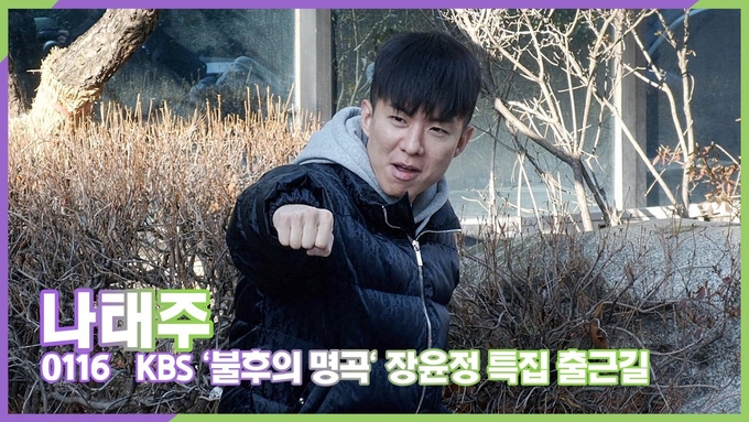 [트롯인스타 양철수기자] 1월 16일(월) 오전, 서울시 영등포구 여의도 KBS에서 진행된 KBS 2TV '불후의 명곡' 녹화를 위해 태권트롯 나태주가 방송국에 도착해 포토타임을 갖고 있다.