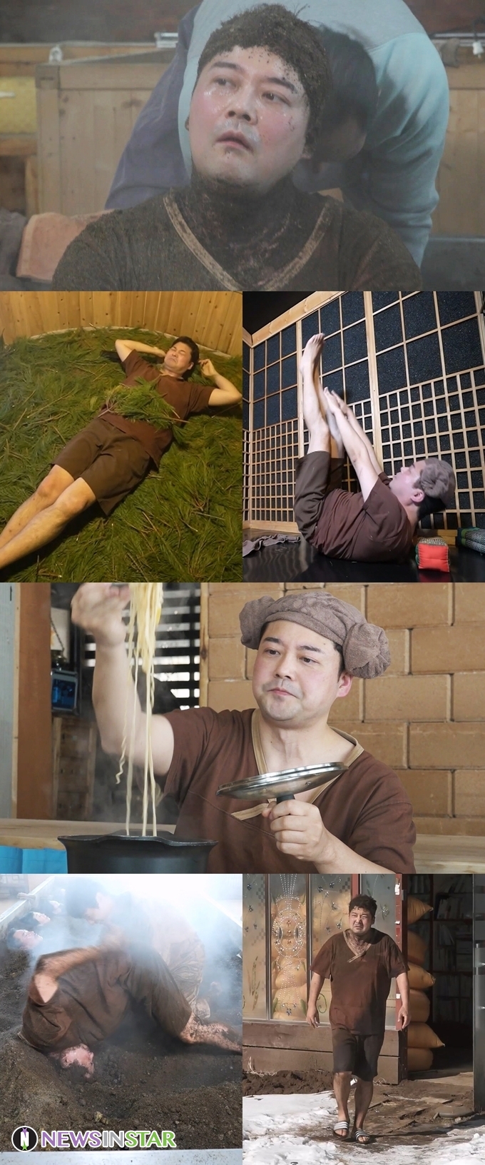전현무는 주변에서 흔히 볼 수 없던 숲속 찜질방만의 매력에 점점 빠져든다. 고즈넉한 한옥 분위기는 옵션, 디톡스를 위해 제1코스 솔잎 찜질을 시작으로 여러 코스가 준비돼 있었기 때문이다. 먼저 솔잎 찜질방에 들어간 전현무는 독소를 빼기 위해 따가움을 견뎌낸다. 이어 광물 찜질방으로 향해 뜨거움을 이겨내며 슈퍼 디톡스 체조까지 곁들여 땀을 뻘뻘 쏟아내는 모습으로 시선을 강탈할 예정이다.