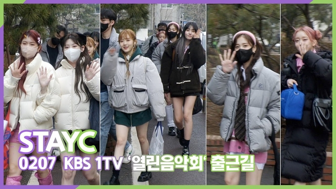 [뉴스인스타 양철수기자] 2월 7일(화) 오후, 서울시 영등포구 여의도 KBS 홀에서 진행되는 KBS 1TV '열린음악회' 출연을 위해 그룹 스테이씨(STAYC) 수민, 시은, 아이사, 세은, 윤, 재이가 방송국에 도착하고 있다.