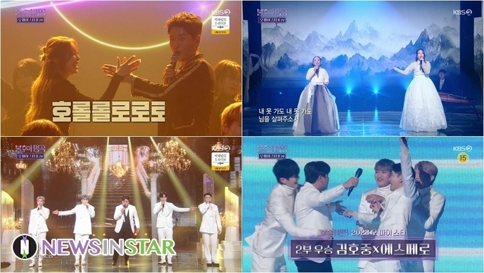지난 11일 방송된 KBS2 ‘불후의 명곡’ 593회는 ‘2023 오 마이 스타’ 특집 2부로 꾸며진 가운데, 윤형주&유리상자, 남상일&신승태, 홍진영&박광선, 김영임&양지은, 김호중&에스페로 등 5팀이 2부 무대에 올라 혼신의 무대를 펼쳤다.