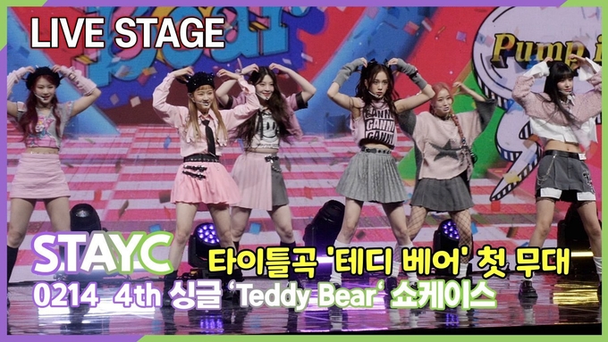 [뉴스인스타 양철수기자] 2월 14일 오후, 서울시 광진구 광장동 예스24 라이브홀에서 진행된 그룹 STAYC(스테이씨)의 네 번째 싱글앨범 'Teddy Bear'(테디베어) 발매 기념 쇼케이스가 열려 수민, 시은, 아이사, 세은, 윤, 재이가 타이틀곡 '테디베어' 무대를 선보이고 있다.
