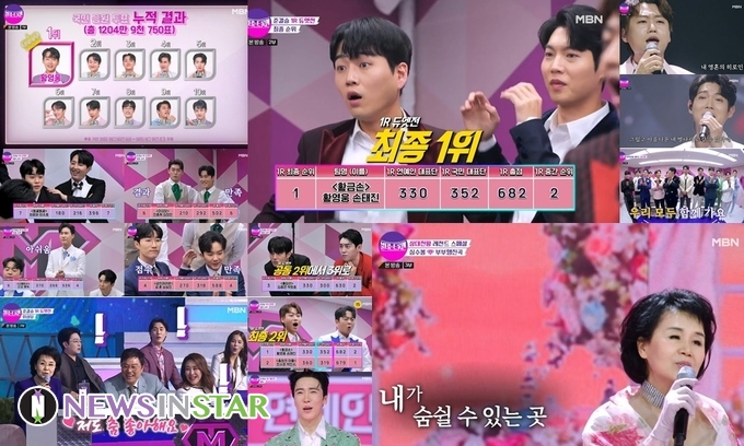 데뷔 9년차 현역 트롯 가수 민수현은 남진 조차 맛을 내기가 어렵다고 했던 ‘내 영혼의 히로인’으로 출사표를 던져 감정의 강약 조절만으로 ‘정통 트롯’의 맛을 완벽히 표현, 관객을 압도하며 연예인 대표단에게 346점을 받았다. 2라운드 3번째 무대에서는 1라운드 1위 손태진이 심수봉의 곡인 ‘백만송이 장미’를 들고 무대 위에 올라 이목을 집중시켰다. 중간 점검에서 심수봉에게 ‘가사를 반드시 숙지하라’는 조언을 들은 손태진은 경연 날까지 가사 외우기에 집중했고, ‘백만송이 장미’를 읊조리듯 웅장한 감성곡으로 표현해 감동을 일으켰다. 연예인 대표단으로부터 “이런 무대가 바로 트롯의 블루오션”이라는 극찬과 함께 점수 357점을 받아 중간점수 2위 자리를 차지했다.