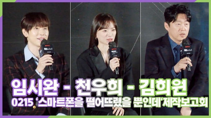 [뉴스인스타 양철수기자] 2월 15일(수) 오전, 서울시 광진구 자양동 롯데시네마 건대입구에서 넷플릭스 '스마트폰을 떨어뜨렸을 뿐인데' 제작보고회가 열려 배우 임시완, 천우희, 김희원이 배역 소개와 캐스팅 이유에 대해 설명하고 있다.