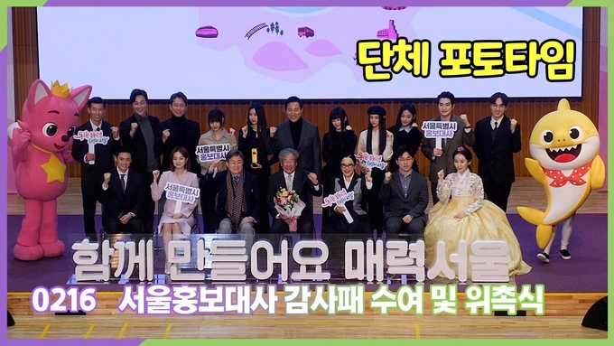 [뉴스인스타 양철수기자] 2월 16일 서울시청에서 '서울홍보대사 감사패 수여 위촉식' 행사가 열려 배우 최불암, 메이크업 아티스트 정샘물, 한국화가 김현정, 캐릭터 핑크퐁·아기상어가 감사패를 받았고, 배우 노주현, 방송인 션, 정신과 의사 양재진·양재웅, 유튜버 슈카월드, 아나운서 오상진·김소영 부부, 가수 이석훈, 틱토커 온오빠, 그룹 NewJeans(뉴진스) 민지, 하니, 다니엘, 해린, 혜인이 홍보대사 위촉패를 받고 있다.