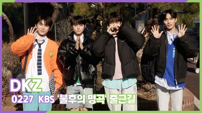 [뉴스인스타 양철수기자] 2월 27일(월) 오전, 서울시 영등포구 여의도 KBS 신관 공개홀에서 진행되는 KBS '불후의 명곡' 녹화를 위해 그룹 DKZ 경윤, 재찬, 종형, 민규가 방송국에 도착해 포토타임을 갖고 있다.