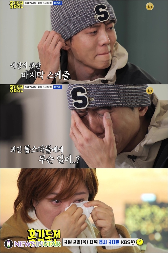 그러나 그 후 울먹이던 주우재가 커다란 손으로 얼굴을 가린 채 주체하지 못할 만큼 오열해 시선을 사로잡는다. 눈물을 흘리는 그의 모습에 “왜 저래?”라고 놀라던 김숙마저 하얀 휴지로 눈물을 닦으며 울고 있어 무슨 일이 펼쳐진건지 궁금증을 솟구치게 한다.