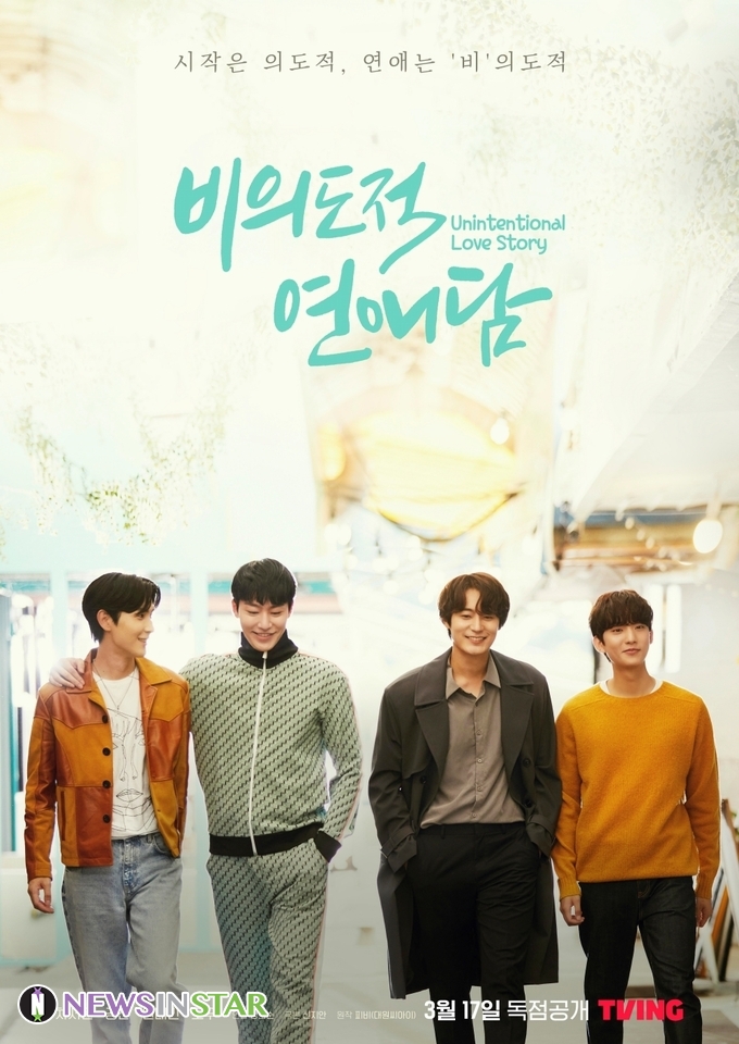 오는 3월 17일 티빙에서 첫 공개되는 ‘비의도적 연애담’(극본 신지안/연출 장의순/제작 ㈜넘버쓰리픽쳐스/원작 피비)은 ‘시작은 의도적! 연애는 ‘비’의도적!’ 거짓말로 시작된 관계에서 진짜 사랑에 빠지게 된 두 남자의 이야기를 담은 신뢰 회복 심쿵 로맨스 드라마이다.