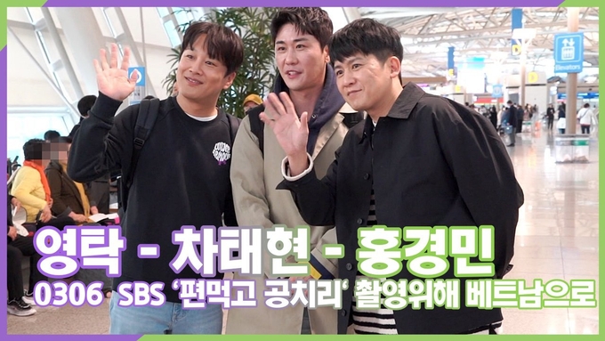 [뉴스인스타 양철수기자] 3월 6일(월) 오후, 인천광역시 중구 운서동 인천국제공항 1터미널에서 가수 영탁과 홍경민, 차태현이 SBS 예능 '편먹고 공치리' 시즌 5 녹화를 위해 베트남으로 출국하기 위해 도착하고 있다.