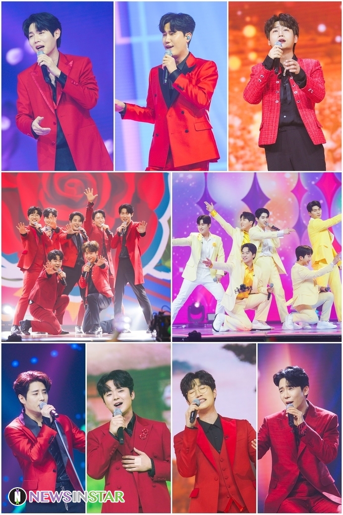 무엇보다 ‘불타는 시상식’ 오프닝에서 TOP7은 눈이 부실 정도로 화려한 레드 슈트를 맞춰 입고 등장, 완벽한 음색 호흡과 업그레이드된 섹시 카리스마 댄스가 조화를 이룬 ‘앗 뜨거’로 첫 무대를 장식해 시선을 강탈했다. 이에 질세라 TOP6 전종혁-남승민-이수호-최윤하-박현호-김정민이 옐로 슈트 차림으로 무대 위를 향해 뛰어올랐고 ‘10분 내로’로 잔망미 가득한 애교 만점 무대를 선보여 환호성을 이끌었다.