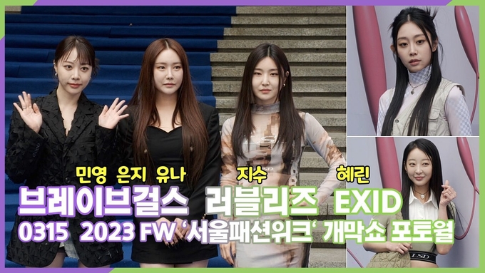 [뉴스인스타 양철수기자] 3월 15일(수) 오후, 서울시 동대문DDP에서 진행된 2023 FW '서울패션위크' 개막쇼 포토월에 그룹 브레이브걸스 민영, 은지, 유나 그룹 러블리즈 지수, EXID 혜린이 참석해 포즈를 취하고 있다.