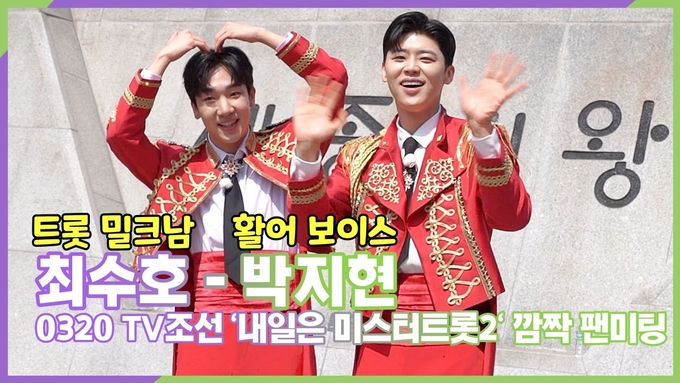 [뉴스인스타 양철수기자] 3월20일(월) 오후, 서울시 종로구 광화문 광장에서 '내일은 미스터트롯2' 2위 박지현과 5위 최수호가 깜짝 팬미팅을 가졌다.