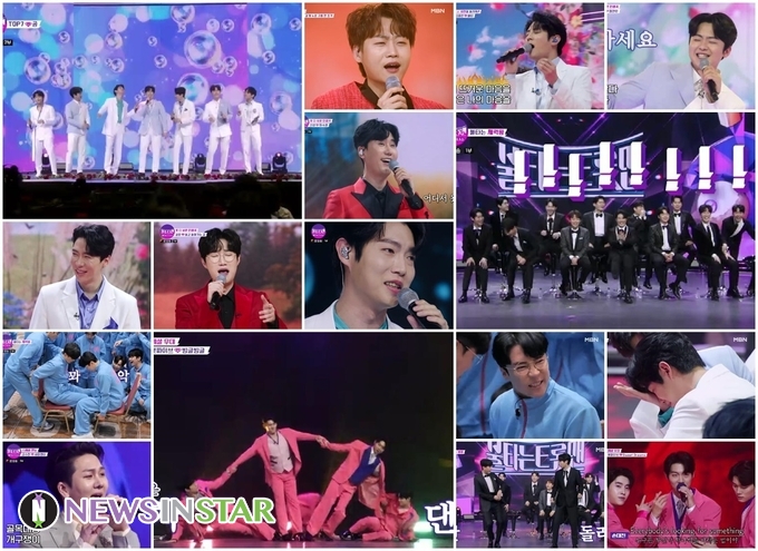 그리고 TOP7이 자신들을 향한 국민 대표단의 절절한 고백을 직접 소개하고, 신청곡을 받아 실시간으로 소통하는 뮤직 토크쇼가 감동과 눈물을 이끌었다. 에녹은 13살 연하 팬과 어머니의 동시 구혼과 더불어 연상의 누나 팬들이 “결사반대!”를 외치자 진땀을 흘렸고, 이들을 향해 “환갑 아래로는 가능”이라는 너스레를 떨며 ‘뿐이고’를 노래해 웃음을 안겼다.