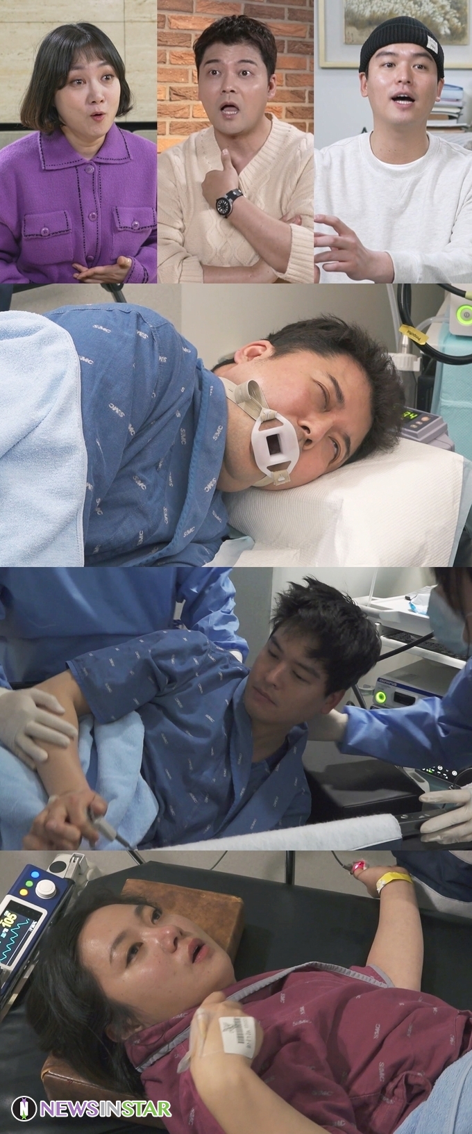 ‘나 혼자 산다’ 팜유 라인 전현무, 박나래, 이장우가 제1회 팜유 피지컬 심포지엄의 하이라이트인 수면 내시경 검사를 진행한다.