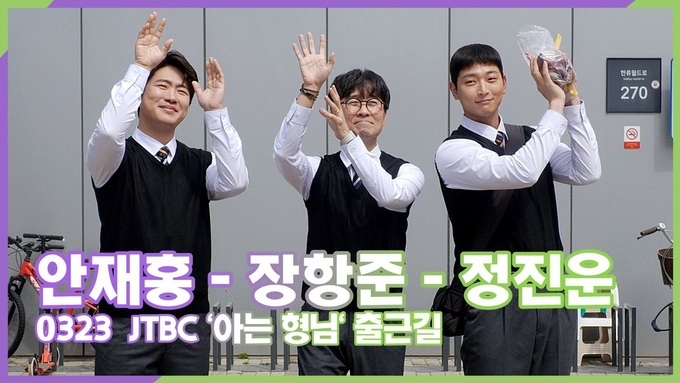 [뉴스인스타 양철수기자] 3월 23일(목) 오후, 경기도 고양시 JTBC 일산 스튜디오에서 진행된 JTBC '아는 형님' 녹화를 위해 영화 '리바운드'의 장항준 감독, 안재홍, 정진운 배우가 방송국에 도착해 포즈를 취하고 있다.