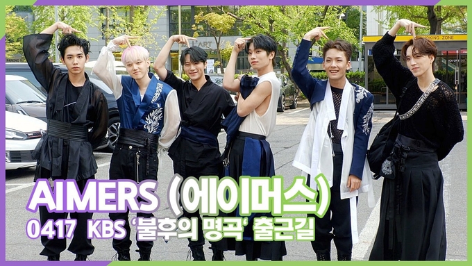 [뉴스인스타 양철수기자] 4월 17일(월) 오전, 서울시 영등포구 여의도 KBS 신관 공개홀에서 진행되는 KBS '불후의 명곡' 녹화를 위해 그룹 에이머스(AIMERS) 승현, 은준, 도륜, 요엘, 승환, 우영이 방송국에 도착해 포즈를 취하고 있다.