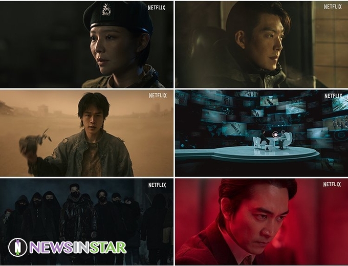 공개된 예고편은 <택배기사> 세계관의 거대한 스케일을 짐작하게 만든다. 40년 전 한반도는 사막으로 변했고 단 1퍼센트만의 생존자만이 살아남았다. 서울의 랜드마크가 보이지만 익숙했던 도심과 자연은 온데간데없고, 모래로 가득 찬 한강, 반으로 부서진 N서울타워 등 황폐화된 서울 전경이 시선을 사로잡는다.