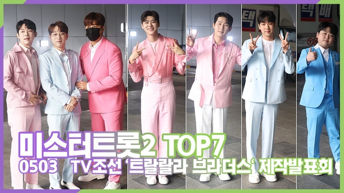 [뉴스인스타 양철수기자] 5월 3일(수) 오전, 서울시 마포구 상암동 디지탈큐브에서 진행된 TV조선 새 예능 '트랄랄라 브라더스' 온라인 제작발표회가 열려 미스터트롯2 TOP7 안성훈, 박지현, 진해성, 나상도, 최수호, 진욱, 박상온이 도착해 포즈를 취하고 있다.