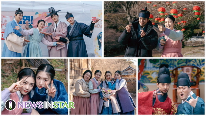또한 극 중 운명적인 사랑을 이뤄내고 있는 신예은과 려운은 평생 가약을 맹세하며 반지를 나눠 낀 사찰에서 절절한 드라마와는 다른 귀엽고 발랄한 모드로 훈훈함을 드리웠다. 두 사람은 똑 닮은 화사한 미소를 장착한 채 손하트를 날렸고, ‘홍보 요정’으로 깜짝 변신해 ‘꽃선비 열애사’에 대한 무한 애정을 아낌없이 분출했다.