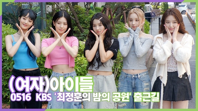 [뉴스인스타 양철수기자] 5월 16일(화) 오후, 서울시 영등포구 여의도 KBS 신관 공개홀에서 진행되는 KBS 예능 '더 시즌즈 - 최정훈의 밤의 공원' 녹화에 참석하기 위해 그룹 (여자)아이들 미연, 민니, 소연, 우기, 슈화가 방송국에 도착하고 있다.