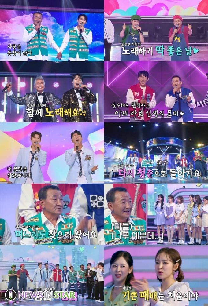 이날 나상도-김환균은 나훈아의 ‘동강’, 신인선-신기남은 오승근의 ‘내 나이가 어때서’, 일민-이동준은 태진아의 ‘동반자’, 신승태-신명선은 진성의 ‘동전인생’, 박지현-김달훈은 이태호의 ‘사는동안’을 함께 부르며 무대에 올랐다. 예사롭지 않은 아버지들의 가창력과 누가봐도 父子 관계인 붕어빵 외모가 웃음을 유발했다.