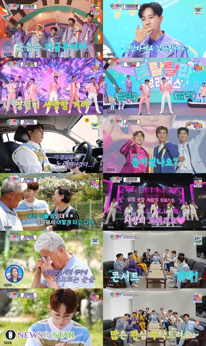 그런가 하면 이날 방송에서는 ‘미스터트롯2’ 전국투어 콘서트 서울 현장이 독점 공개됐다. 관객들의 함성에 긴장한 것도 잠시, 파이팅을 외치며 무대에 오른 트롯 브라더스는 최선을 다해 노래했다. 진선미(안성훈, 박지현, 진해성)의 ‘애인이 되어줄게요’, ‘미스터트롯2’ 공식 F4(박지현, 최수호, 진욱, 송민준)의 ‘나야 나’, TOP7의 ‘사랑의 트위스트’까지. 콘서트의 뜨거운 열기가 안방까지 전달됐다. 무엇보다 웃음이 끊이지 않는 트롯 브라더스의 콘서트 대기실 모습이 인상적이었다.