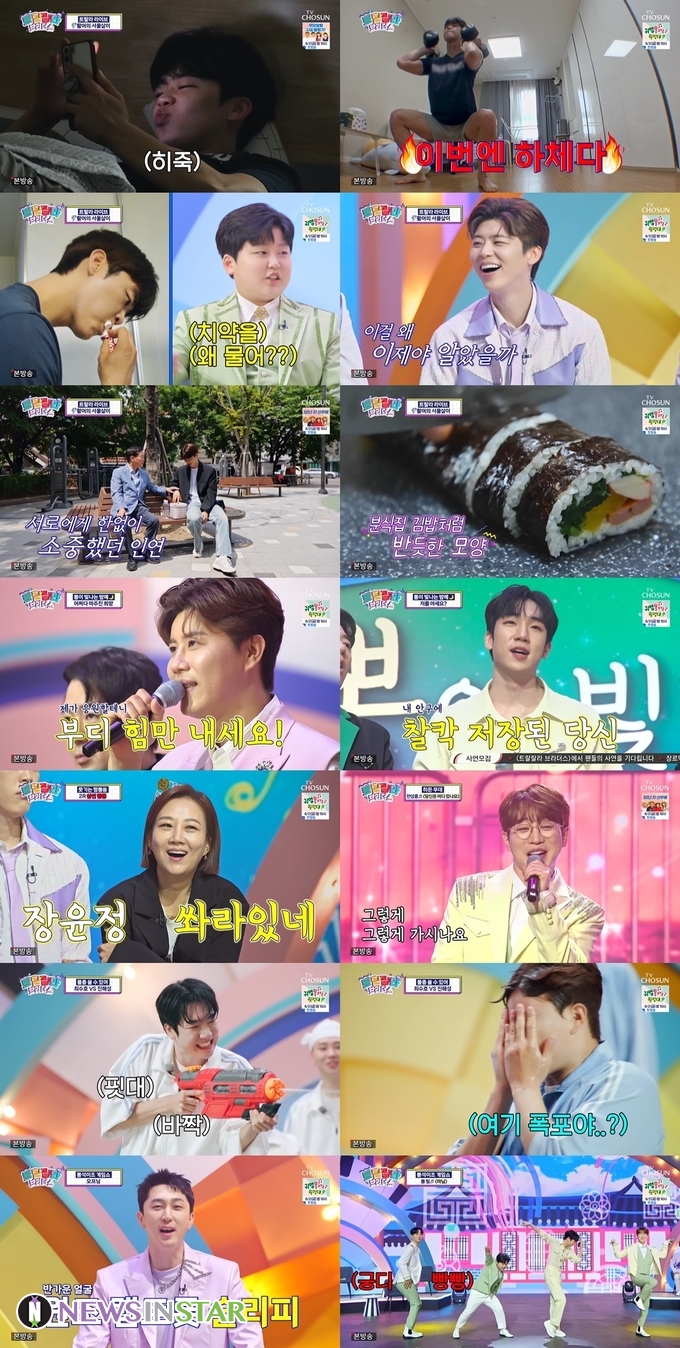 또한, 참참참 게임 후 진 사람에게 5초간 물총공격을 퍼붓는 '물총 쏠 수 있어' 게임도 만만치 않은 빅웃음을 투척했다. 인정사정 볼 것 없이 정수리, 얼굴 등에 물총을 쏘는 트롯 브라더스의 장난기 넘치는 모습이 수요일 밤 팬들에게 시원한 웃음을 안겼다.