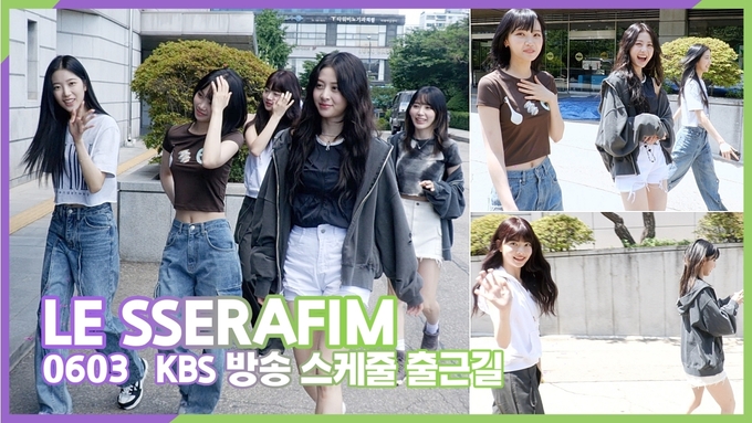 [뉴스인스타 양철수기자] 6월 3일(토) 오후, 서울시 영등포구 여의도 KBS 별관에서 그룹 르세라핌(LE SSERAFIM) 김채원, 사쿠라, 허윤진, 카즈하, 홍은채가 방송 스케줄을 마치고 방송국을 나서고 있다.